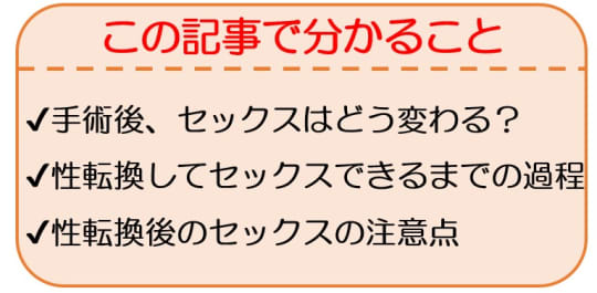 体も女性に変わって性に対して開放的になるという例も多く見られるようですが、セックスに関しては衛生管理やアフターケアが大切です。
