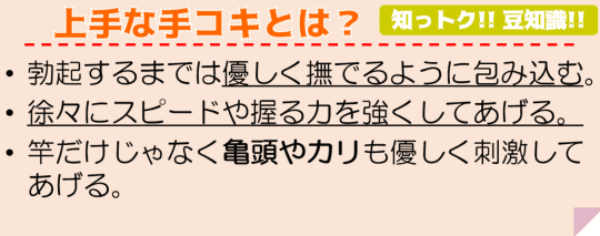 もし、口で硬くしてあげないのだったら、小指以外の4本の指を使って、亀頭の方からチューリップのように優しくつまむようにしてペニスをしごいてみてくださいね。