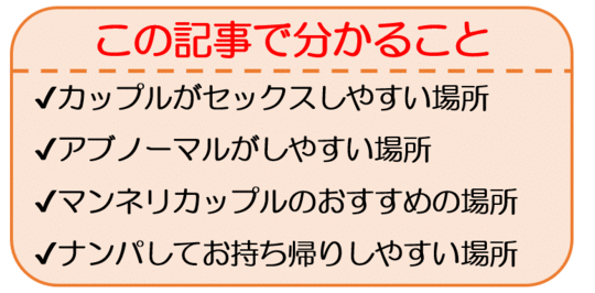 まだセックスしたことないカップルの方や普通のセックスに飽きちゃったという方にオススメしたいセックス場所があります。