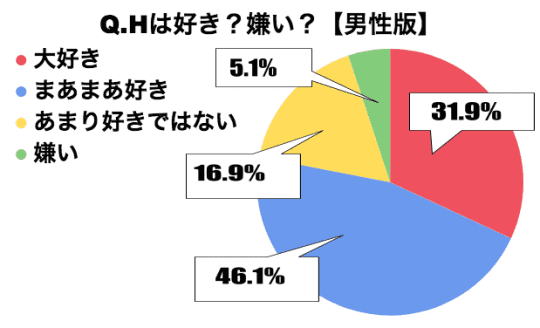 大好き、まあまあ好き、が大半を占めています。女性版との違いから、女性を満足させられない自己満なセックスをしている男性が多いことが分かります。