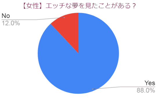 女性については、50人中44人がエッチな夢を見たことがあると答えており、男性ほどでもありませんが、88%で高い確率でした!