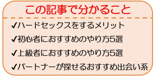 このようにハードなセックスはマンネリ防止にも大いに役立つので、チャンスがあれば積極的に挑戦していくといいでしょう。