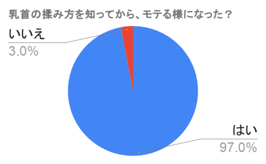 インタビューの結果、97%の男性が「乳首の揉み方を知ってからモテるようになった」と回答しています。