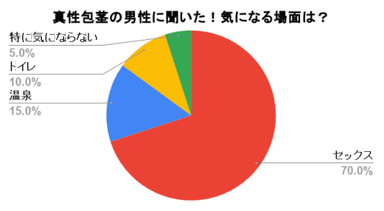 グラフでも分かるように、「セックス」の時には7割の男性が自分の真性包茎を気にしちゃうんです。