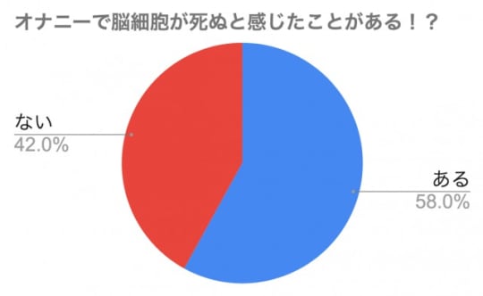 オナニー好きの男女100名にネットで「オナニーで脳細胞が死ぬと感じたことがある?」というアンケートを取ったところ、半数以上の「58%」の方が「ある」と回答しています。