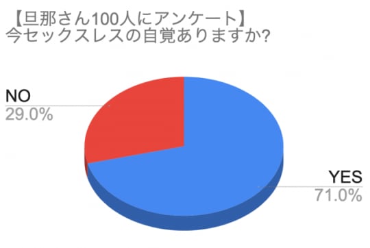 アンケートの結果、自分たちはセックスレスだと自覚している男性は71%でした。