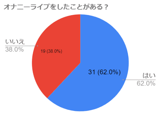 半数以上の女性がオナニーライブをした経験があるということが分かります。