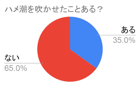 ご覧の通り、35%の男性が「ある」と答えており、ハメ潮を吹かせるのは難しいということがわかります。