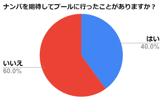 20歳から30歳までの女性200人にネット上で取ったアンケートです。ナンパを期待してプールに行ったことがある女性がこんなにもいるのです。