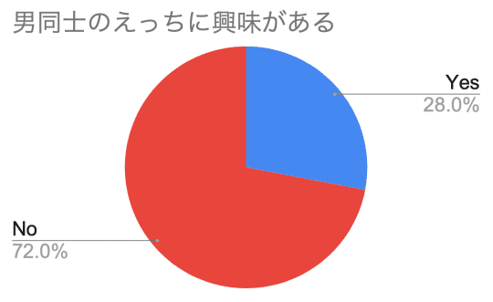 ところで、20代から30代の男女向けの情報メディアで「男同士のえっちに興味があるか?」アンケートを取ったところ、なんと28%の男女が興味があると答えました。