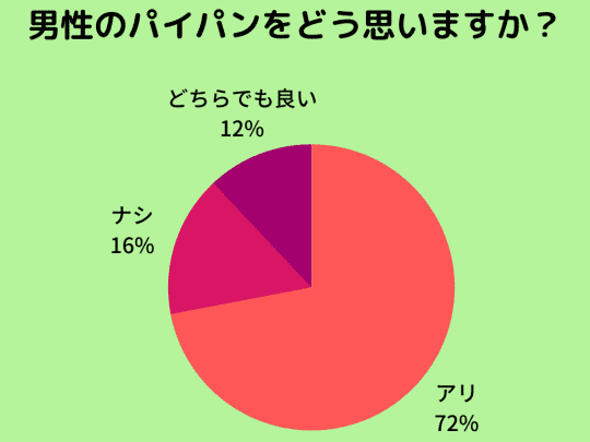 すると72%の方が「アリ」と回答していました!ほとんどの女性は男性のパイパンを受け入れるということです。