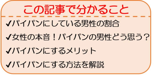 男性がパイパンにすることで多くの女性から受けが良いということがわかりました。それだけでも男性にとってパイパンにするメリットがあるでしょう。