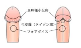 ③包皮小帯部の左右にできるつぶつぶ【包皮腺】