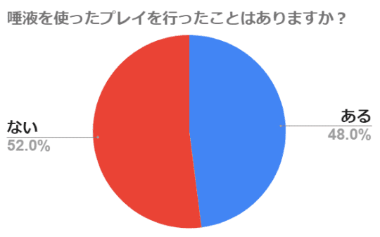 上記のグラフを見てもらえれば分かると思いますが、約半数以上の方が唾液を使ったプレイをしたことがあると答えてくれました。