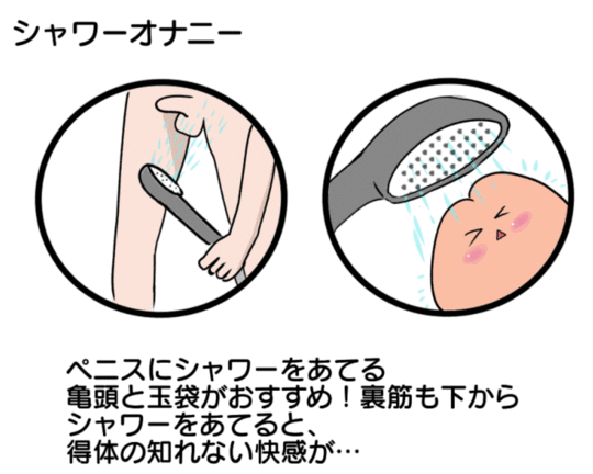 また、お風呂でのオナニーはシャワーを亀頭に当てたり、お湯で滑りを良くしたりできるため刺激が一味違います。筆者もよく浴室でオナニーしていましたね。