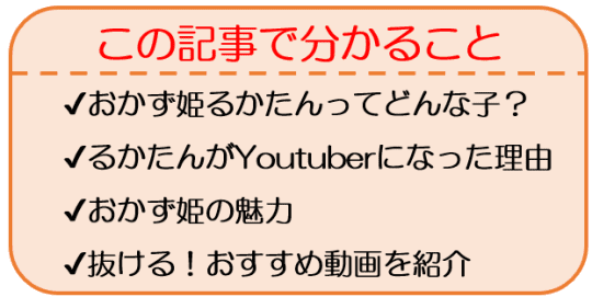 さて、おかず姫るかたんの生い立ちやYouTuberになった理由について見てきました。
