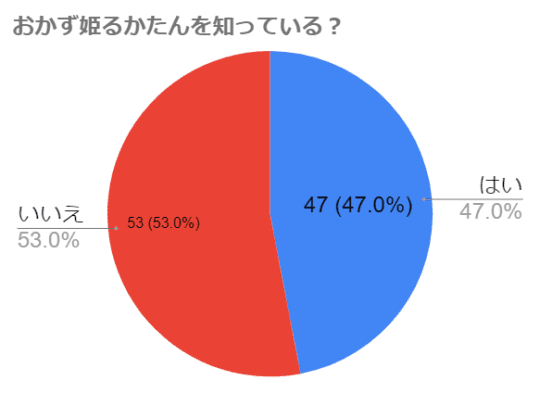 この結果によると半数以上の人がおかず姫るかたんを知らないということになります。