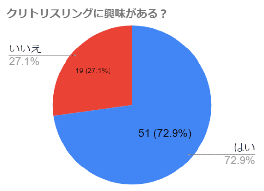 どうでしょうか?僕もビックリしたのですが、7割以上の女性がクリトリスリングに興味を持っているということが分かりました。