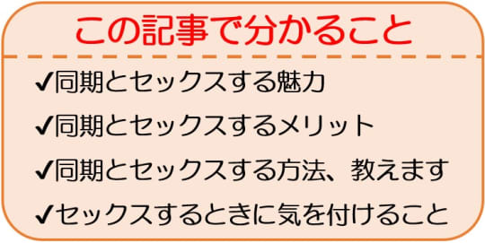 同期とセックスる魅力や得られるメリットについて解説しました。
