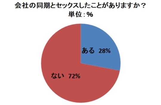 こちらのアンケート結果から、会社の同期とセックスしたことがある人はなんと3割近くもいることがわかります。断られた人もいることを考えると、したいと思っている人はもっとたくさんいることが考えられます。