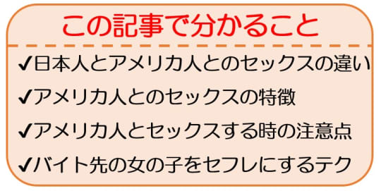 アメリカ人とのセックスで、日本人と明らかに異なる事があります…!