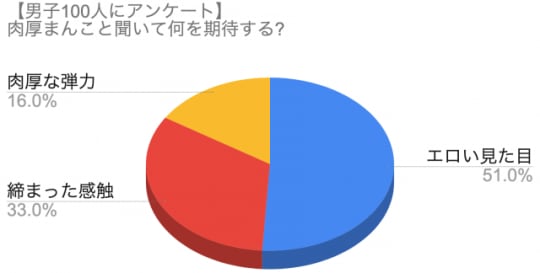 今回は私が独自調査として、都内を移動中の男性100人にアンケートを実施してみました。肉厚まんこと聞いて何を期待しますか?