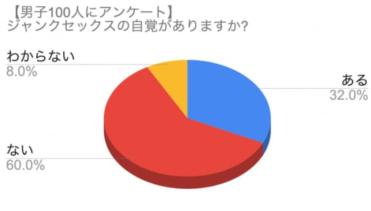 ところで、結果ですがジャンクセックスの自覚がある人は32%でない人は60%でした。
