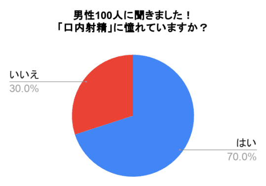上のグラフは、私の友達やヤリチン仲間にインタビューしたグラフです。口内射精をしてもらいたい男性はなんと7割!こんなにいるんですねぇ。