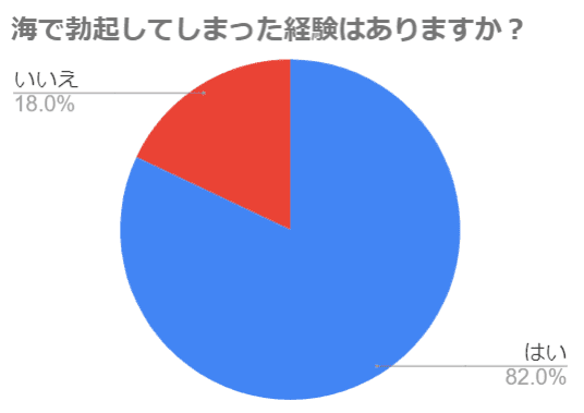 今回は男性100人を対象に「海で勃起してしまった経験はありますか?」とアンケートを取ってみました。結果は上記のグラフの通りです。