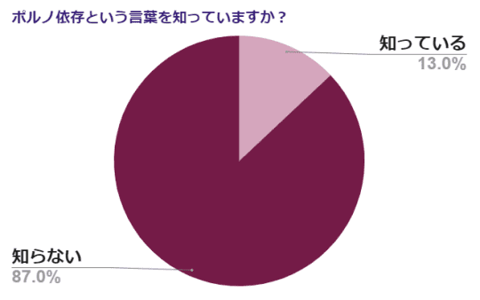 SNSで成人男女78人に『ポルノ依存をご存知ですか?』と聞いてみたところ、『知っている』と答えた人はわずか13%。