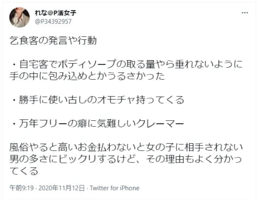 風俗嬢をやっていて「嫌だな~」「関わりたくないな~」って思う男性客ばかりですね。