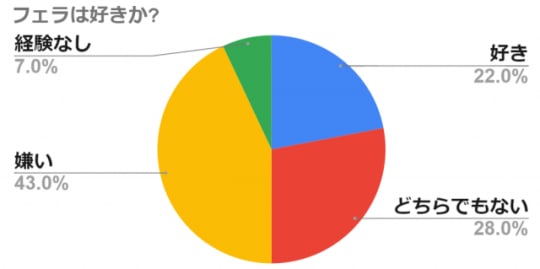 10代~30代の女性100人対象にフェラが好きかのアンケート結果はこのようになっております。