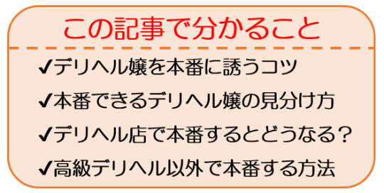 ですが、デリヘルはあくまで本番以外の性的サービスを楽しむもの。