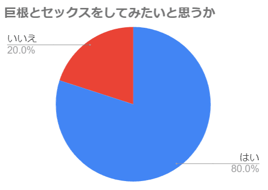そこで今回は女性100人を対象に「巨根とセックスをしてみたいと思うか」とアンケートを取ってみました。結果は上記のグラフの通りです。