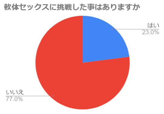 今回は男女100人を対象に「軟体セックスに挑戦した事はありますか」とアンケートをとってみました。結果は上記のグラフの通りです。