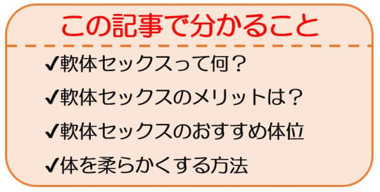 軟体セックスは新しい刺激的な快感が味わえますし、セックスのマンネリ化にもつながるので、こんなにたくさんのメリットがあるんですよ♡