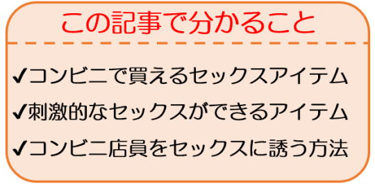 だからこそ、ムラムラした気持ちのままセックスに使えるアイテムをコンビニで購入して、エロエロセックスプレイを楽しんでみませんか?