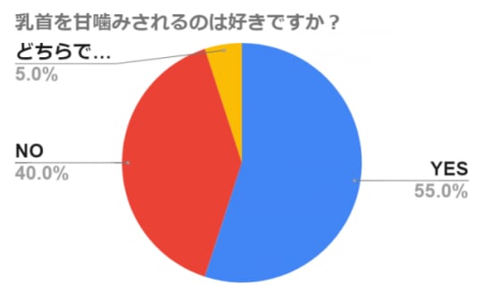 エッチのシチュエーション調査が行った、20代~40代のセックス経験のある女性200人を対象に行った調査で、「乳首を甘噛みされるのは好きですか?」というアンケートがあります。