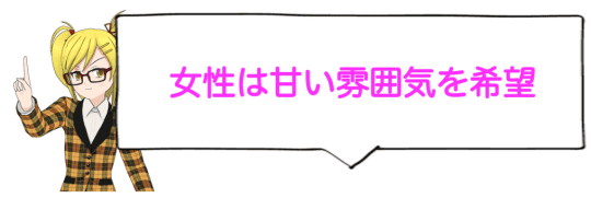 たまに見える強引さは恋のスパイスにもなりますが、甘い雰囲気を作るという点でいえば過程を楽しむことのほうが大切です。