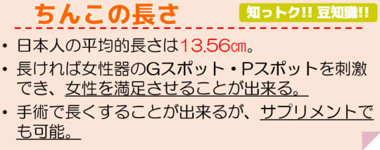 それによると、日本人男性のペニスの長さの平均は13.56cm、亀頭の直径は3.53cm、竿の直径が3.19cmだそうです。