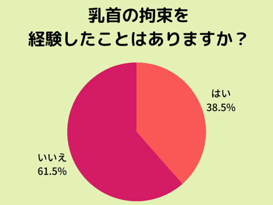 そこでSNSにて、SMプレイ経験のある20~30代の女性100人に「乳首の拘束を経験したことはありますか?」というアンケートを実施しました。