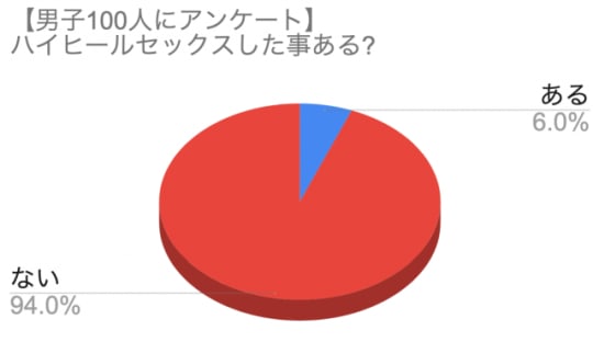 これには納得です。そう考えるともっとハイヒールセックスの経験者がいてもいいと思ったんですけどね。