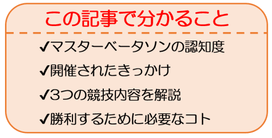 マスターベータソンの競技はどんなのがある?