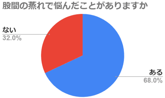 グラフを見てもらえれば分かる通り、約7割の人が股間の蒸れに悩んだことがあると回答をしており、いかに股間の蒸れが男性にとっての悩みとなっているかが分かると思います。