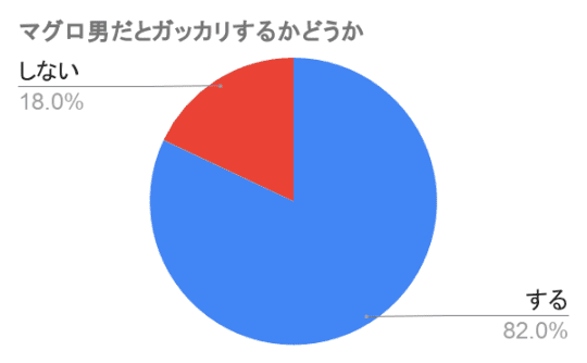 今回は渋谷で買い物をしている女性100人を対象にアンケート調査を行いました。その結果、マグロ男だとガッカリする割合いがかなり高いことが判明。
