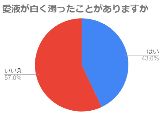 今回は女性100人を対象に「愛液が白く濁ったことがありますか」とアンケートをとってみました。結果は上記のグラフの通りです。