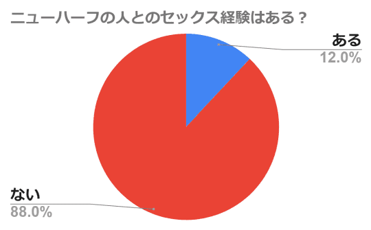 この結果からわかるように、ニューハーフとのセックス経験がある人は、全体の約1割ほどしかいないようです。
