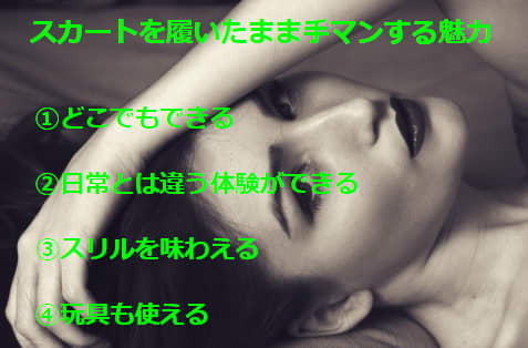 スカートを履いたまま手マンをする最大の魅力は、いつでもどこでもできるという点でしょう。