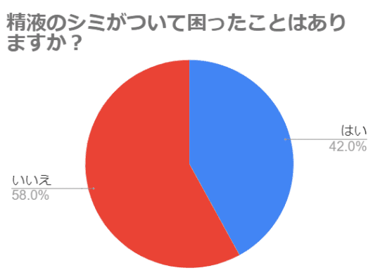 今回は男性100人を対象に「精液のシミがついて困ったことはありますか?」とアンケートを取ってみました。結果が上記のグラフの通りです。