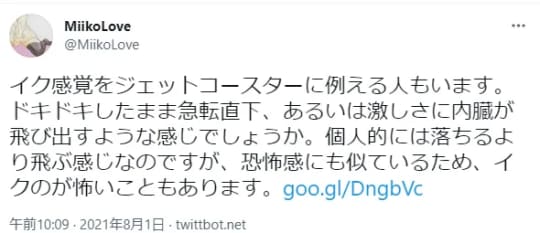 『イク』という事に関しては、『イクのが怖い』と思っていた時の方が寧ろ興味津々でした。笑